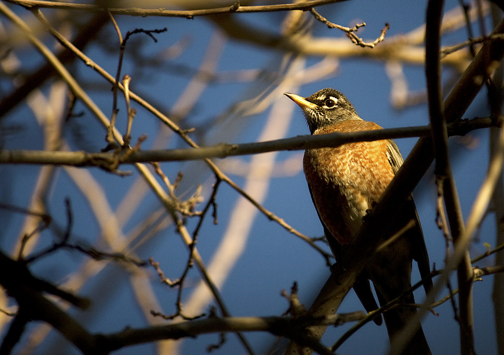 Today I took dozens of photos of uncooperative robins doing all sorts of interesting things just out of range of my lens, or behind dense foliage. I did get a couple of relatively clear shots, but wasn’t completely happy with them. Meanwhile, this dove was sitting up on the wire the whole time watching my attempts. Maybe he’s not as glamorous as a robin, but he does know how to sit still for a photo.