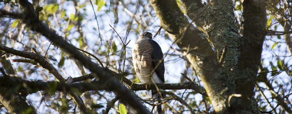 I noticed this hawk (I think it’s a Red-shouldered Hawk) sitting quietly in a tree during a late afternoon walk. They will typically fly away when humans come near, so this was a rare photo op for me as this bird didn’t seem to be bothered by my presence and stayed on its perch while I took a few pictures.