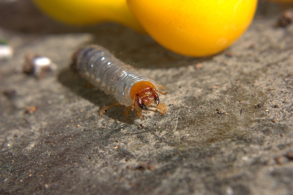 I found two of these disgustingly fascinating grubs while pulling up old tomato plants today. I found out that they’re European Chafer beetle larvae. The beetle itself isn’t horrible looking, but these larvae are something else. Their bodies are kind of translucent, which makes some of their interior parts visible. :-O