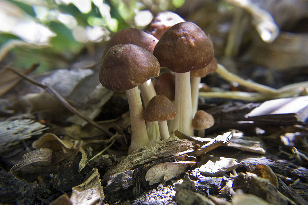 Our local power company is responsible for trimming trees that grow too close to their lines, and after running the cuttings through a wood chipper they offer them to the public to use as mulch. Last year I got a truck load of their mulch, and since then I’ve seen some different varieties of mushrooms in the garden. I’m guessing it’s related.