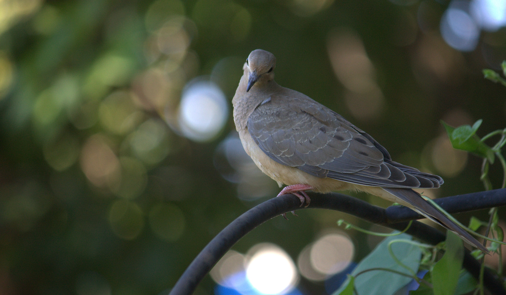 My little greenhouse has become quite the bird trap this week. The visiting racing pigeon has been caught in there three times, and then this morning when I went out to the garden I found this little dove flapping around inside. Neither one seems to be too traumatized by the experience, since they both keep coming back.