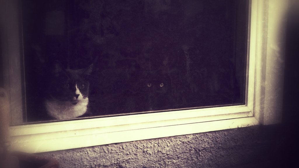 My cat, Bones, waiting for me in the laundry room because he wants to go outside. He can’t be trusted out there on his own with the birds, squirrels, etc.