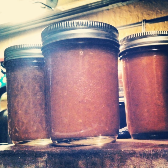 I’m being lazy and using today’s Instagram pic here as well. Today I made salted caramel apple butter and peach BBQ sauce (pictured). Peeps are getting jars of food for the holidays.