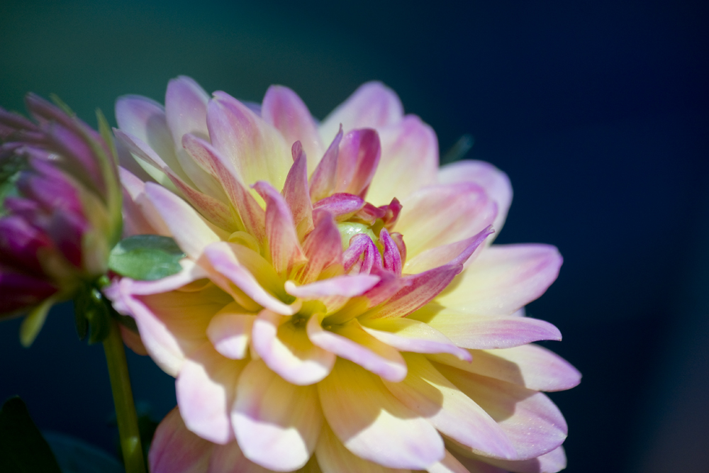 I had two dahlias last summer, and one disappeared completely. I think something ate it. I don’t even remember what color it was, but I don’t think it was as pretty as this one. This one sometimes looks more yellow, sometimes more pink – depends on the stage of the blossom. Right now there are not many flowers blooming in my garden, so this one is getting a lot of attention.