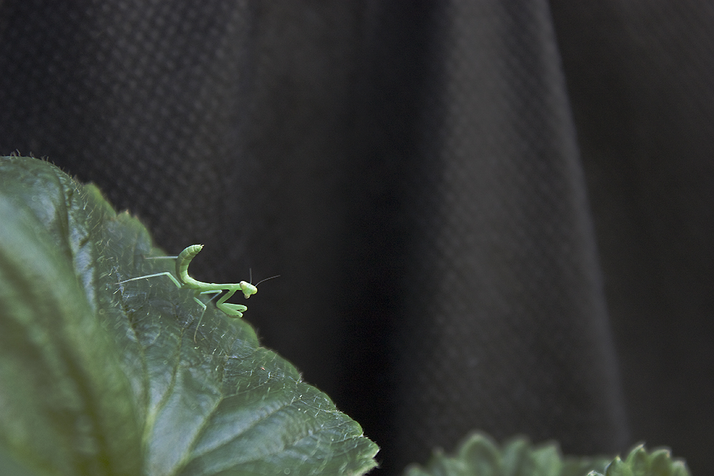 This little mantis has been living on my strawberry plants for a couple of weeks. I found his exoskeleton yesterday hanging from the underside of a leaf, so its good to know he’s doing well enough there to have grown too big for his “skin”. I had to move the strawberry pot to the other side of the patio today, so I hope he continues to thrive in the new location.