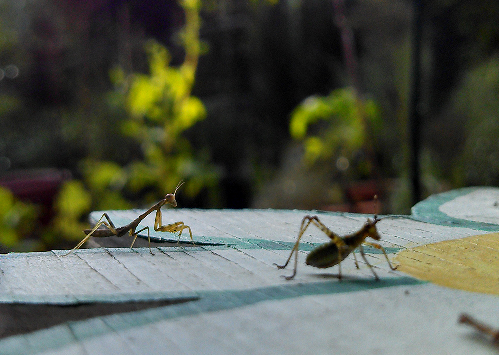 El Destructo I had no idea this little grasshopper-thing (edit: katydid) was so colorful until I took a closeup look at him. This doesn’t mean that I’m not annoyed by all the leaf chewing.