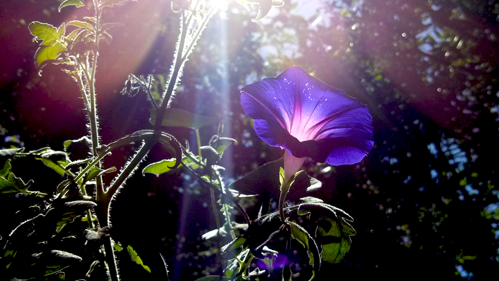 The sun was shining down through the mulberry trees, lighting up morning glory flowers all over the garden today. These vines are almost done for the year – I’ve been pulling them up all week. I’m a little sorry to see the blossoms go, but they really only look like this in the morning. The rest of the time… meh.